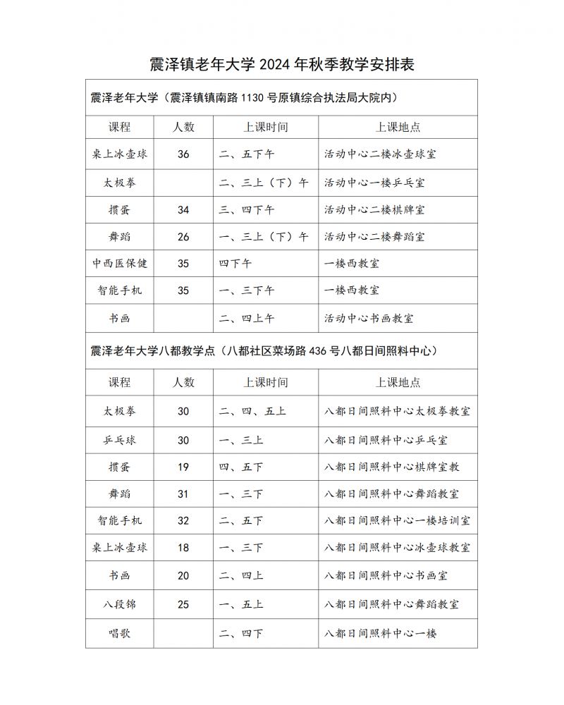 经研究决定,震泽镇老年大学(含八都教学点)计划于2024年9月18日开学。现将有关事项通知如下: